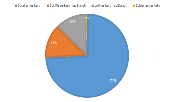 Zwar erzielt der Verkehr nur den dritten Platz, aber immerhin ist er ein Aspekt an denen jeder Einzelne aktiv handeln kann. Das Diagramm zeigt uns, dass der Straßenverkehr eindeutig die Oberhand gewinnt.