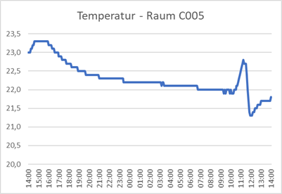 In diesem Bild erkennen wir, dass auch bei nicht genutzten Räumen die Raumtemperatur mindestens 21 Grad beträgt, dies ist eindeutig eine Verschwendung von Energie.