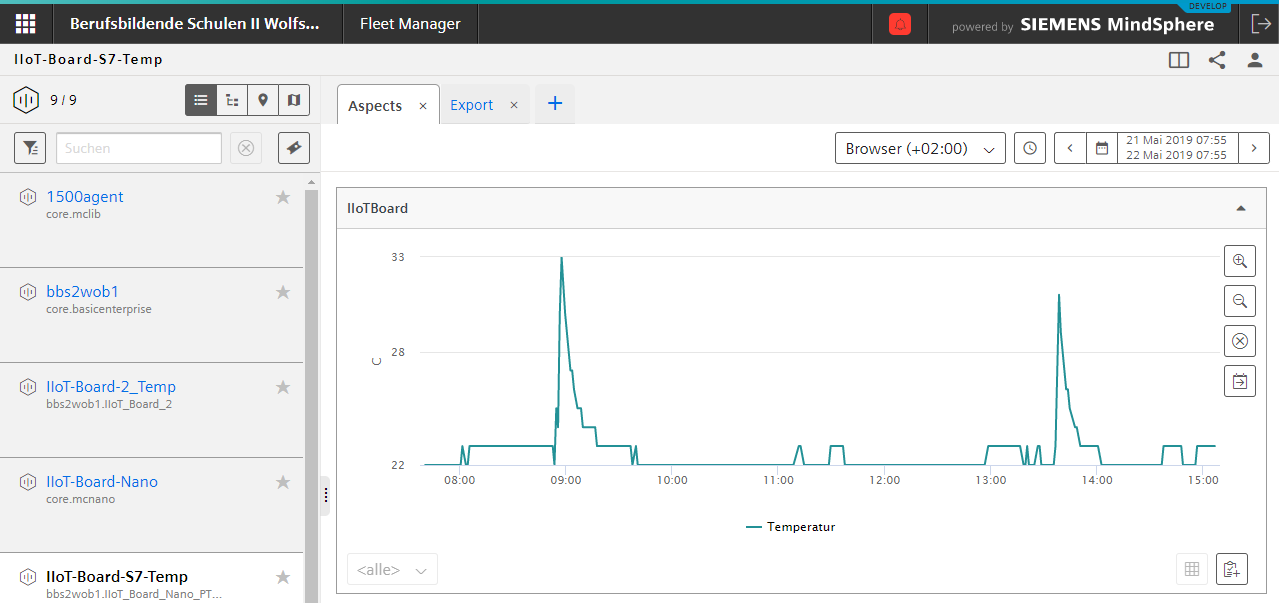 Der Fleet Manager bietet diverse Möglichkeiten, um die Daten, die vorher in die MindSphere-Cloud geladen wurden, zu analysieren.