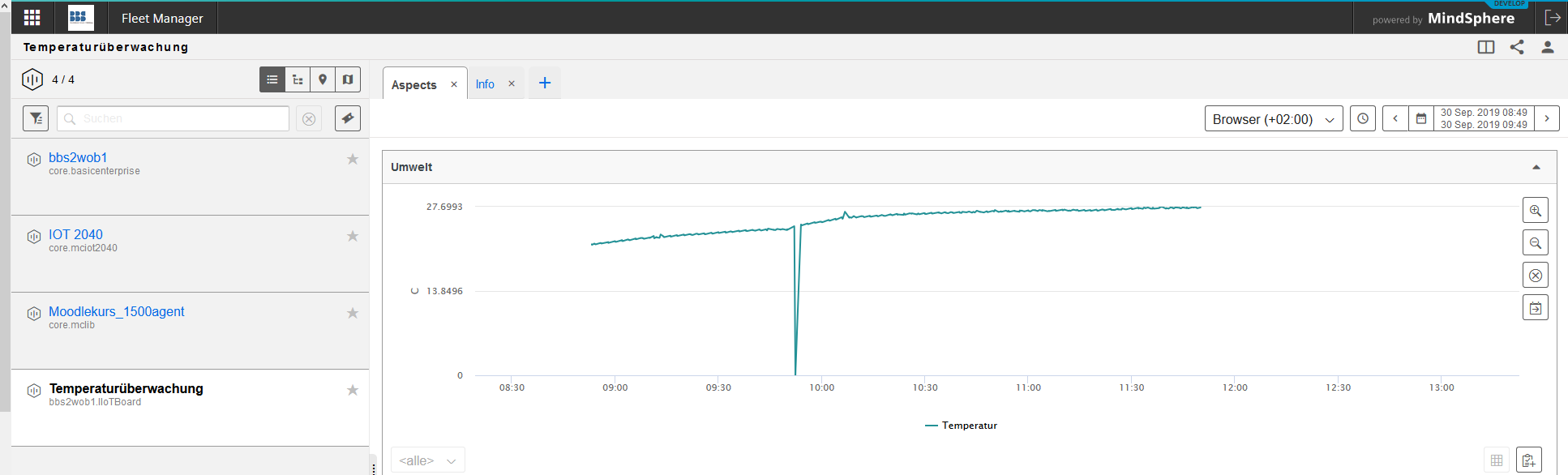 Öffnen Sie nun den Fleet Manager und wählen Sie ihr Unterasset aus. Im Reiter Aspects könne Sie sich nun ihre Daten ansehen.