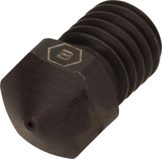 Düsen aus gehärtetem Stahl sind genau richtig um Filamente abrasiven Partikeln zu verarbeiten. Die speziell gehärteten Stahldüsen sind im Bereich des 3D Drucks kaum zu zerstören. Egal ob Glow-in-the-Dark, Carbon-, Metall- oder Holzfilamente – Düsen aus gehärtetem Stahl sind dafür genau richtig. Gehärteter Stahl ist durch die gehärtete Oberfläche kaum abnutzbar. Wenn du also nicht nur mit den Standardmaterialien arbeitest gehören Düsen aus gehärtetem Stahl mit den unterschiedlichen Düsendurchmessern auf alle Fälle in dein Repertoire.