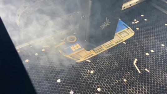 Mithilfe eines Lasercutters konnten Ausschnitte in die Seitenteile des T1 Busses gefertigt werden.