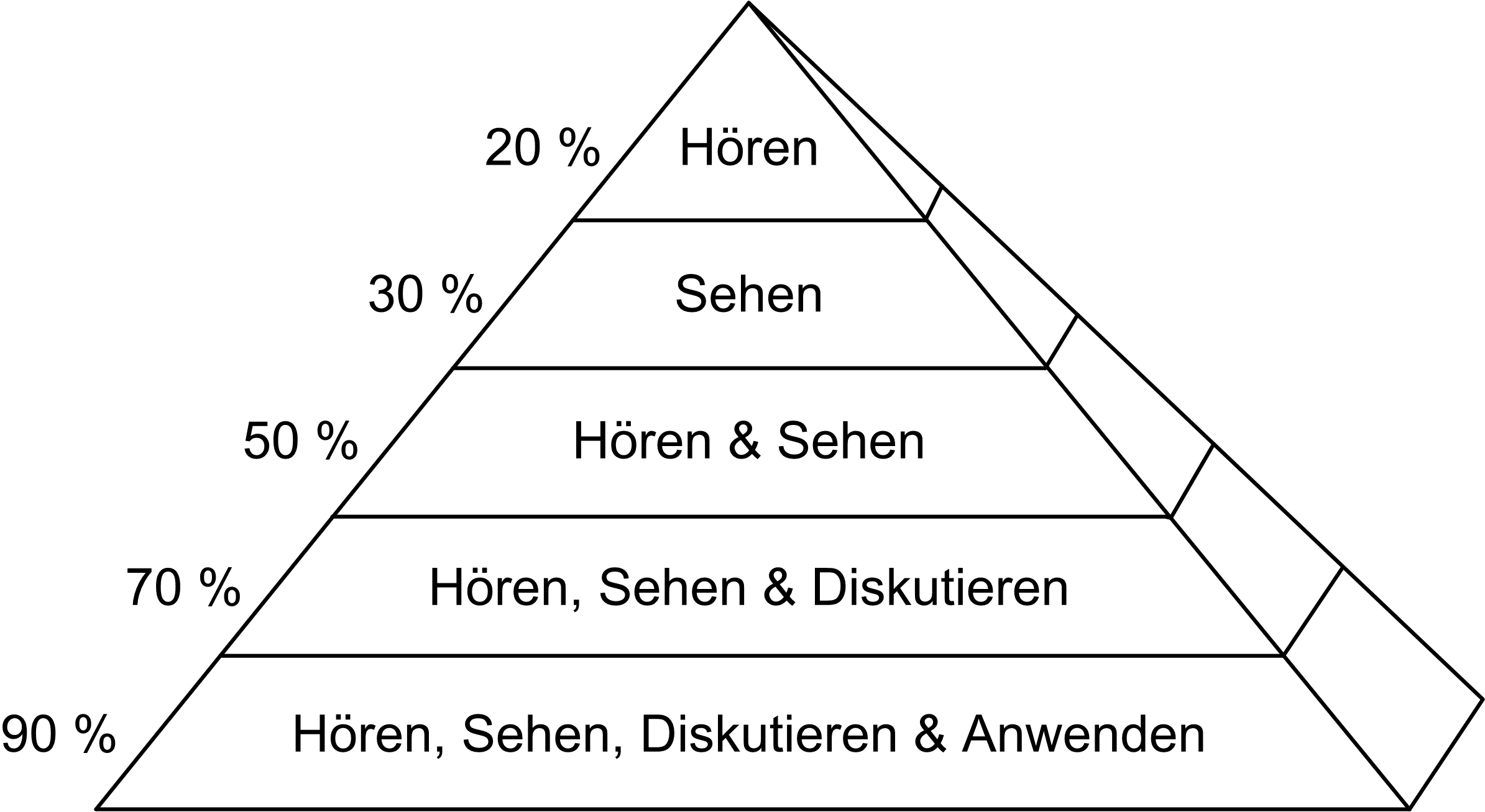 Durch das geschickte Kombinieren von bestimmten Methoden kann ein guter Lernerfolg erzielt werden. So gibt folgende Lernerfolgspyramide einen guten Überblick, was zu beachten ist.