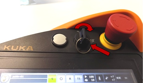 - Den Schlüsselschalter am Schaltschrank in die Position OFF drehen.