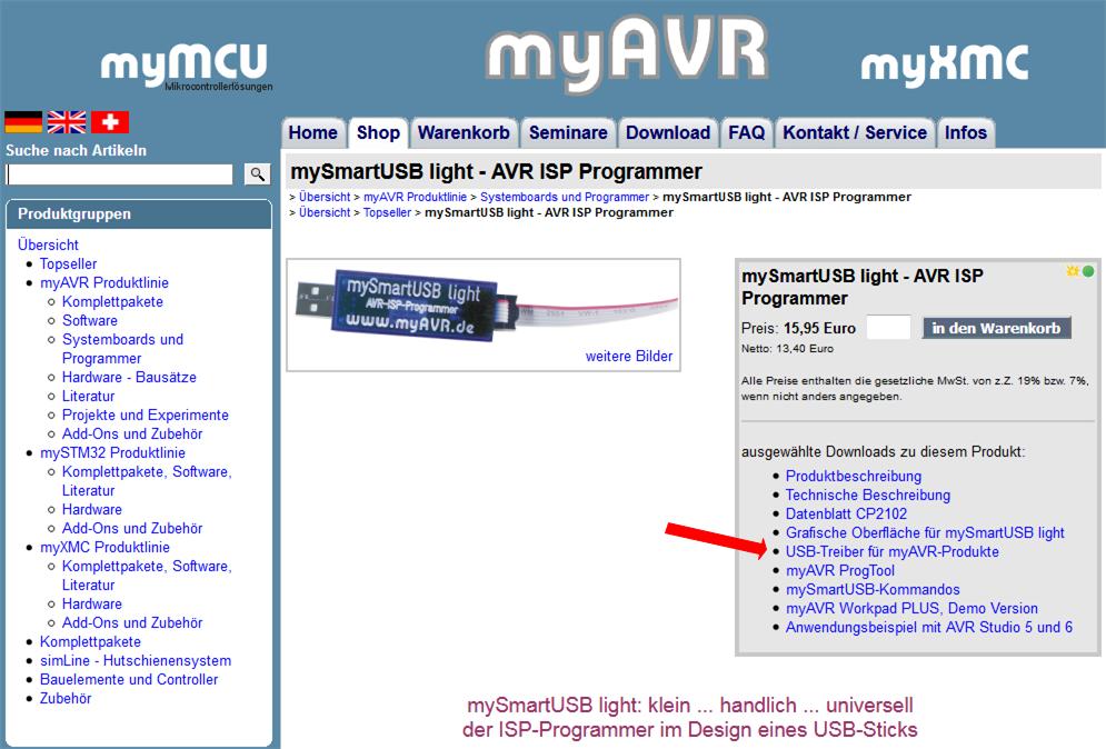 Allerdings kann Windows keinen passenden Treiber finden. Den müssen Sie manuell installieren. Der Treiber für den Programmer von myAVR kann auf der Internetseite