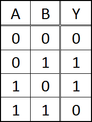 Bei der XOR-Verknüpfung mit zwei Eingängen ist der Signalzustand am Ausgang "1", wenn der Signalzustand nur eines der beiden Operanden "1" ist.