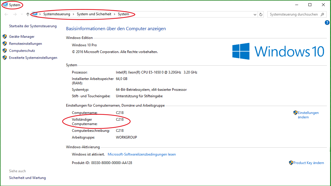 Dazu müssen Sie den PC-Alias herausfinden. Dieser steht auf der System Seite.