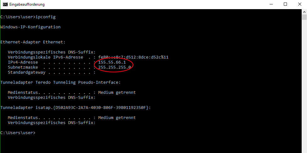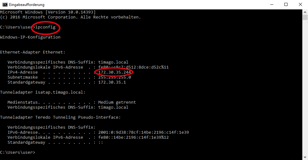 - Als letztes nocheinmal mit "ipconfig" über das CMD gegenprüfen!