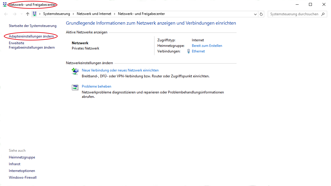 - Danach Rechtsklick auf Ethernet (bzw. WLAN, je nach Verbindungsart) und auf Eigenschaften.