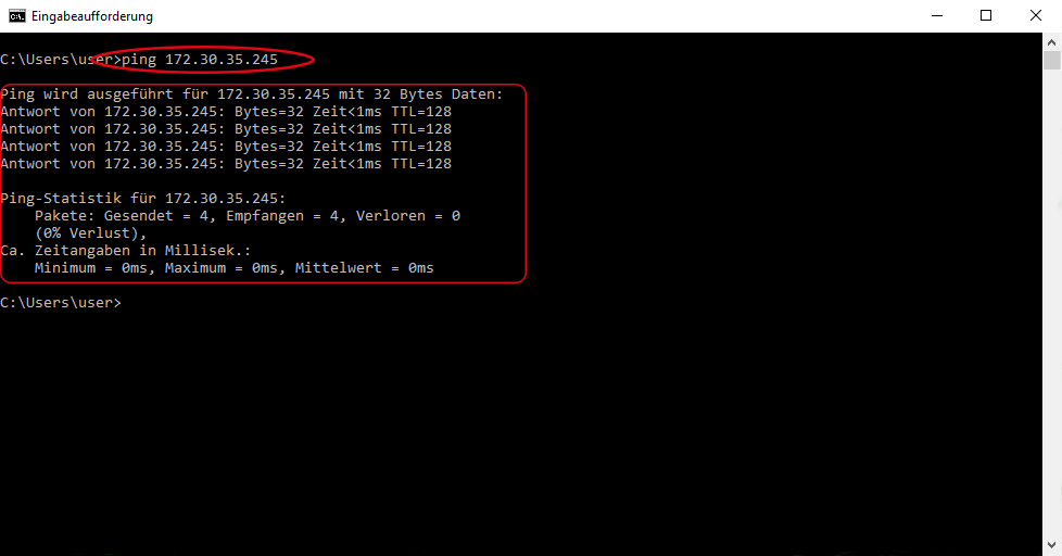 - Wenn Sie diese Ausgabe sehen, war der Ping erfolgreich!