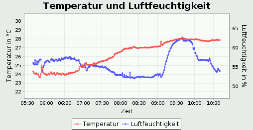Mit dem Programm Reader.jar (klicken, Download startet automatisch) lässt sich der Temperatur- und Luftfeuchtigkeitsverlauf graphisch darstellen.