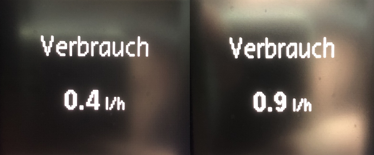 Links der Verbrauch mit ausgeschalteten Verbrauchern, rechts mit allen eingeschalteten Verbrauchern