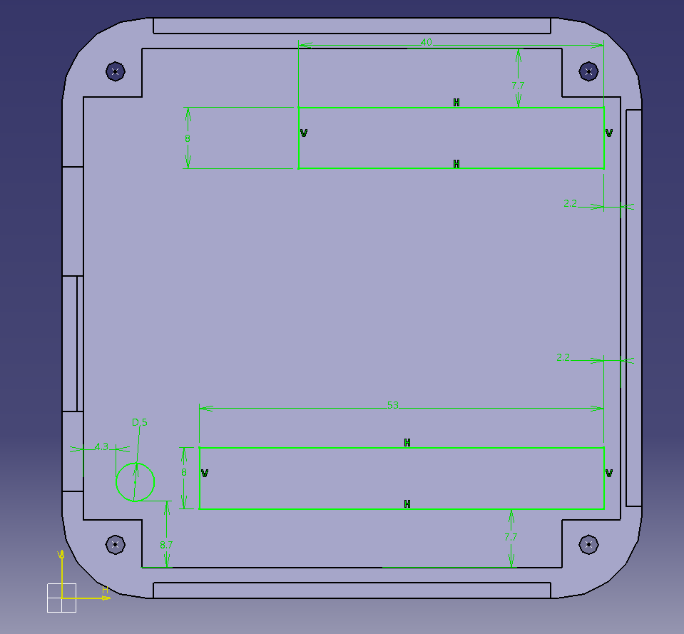 8. Wir skizzieren nun auf dem Grund des Deckels die Löcher für die Anschlüsse.