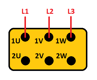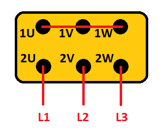 Die nötige Beschaltung des Motorklemmbretts eines Dahlander-Motors lässt sich anhand der folgenden Bilder erkennen: