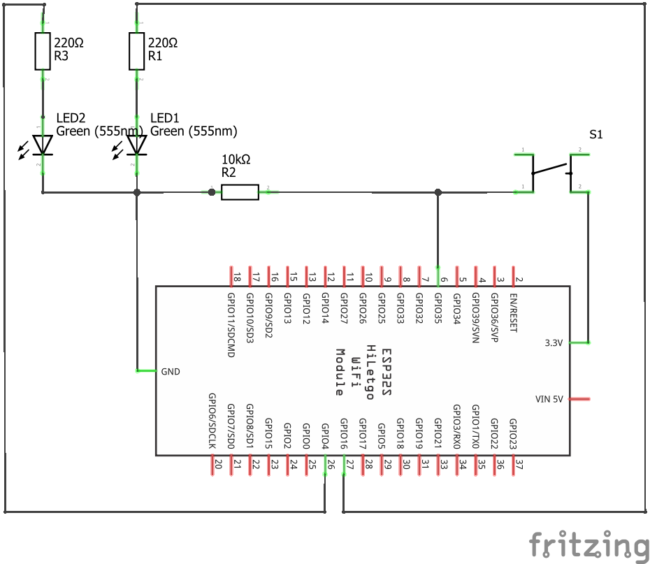 Abbildung: Erweiterung mit zweiter LED - Schaltplan