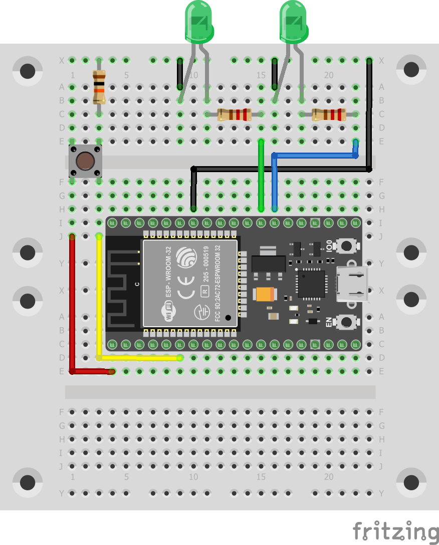 Um den bisherigen Aufbau um eine zweite LED zu erweitern, wird nicht sonderlich viel benötigt.