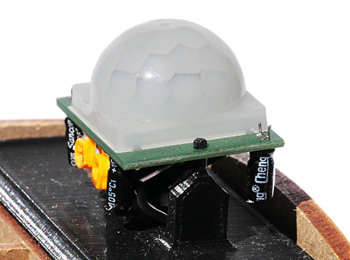 Dabei wird ein Mikrocontroller verwendet, um die genannten Komponenten integrieren zu können. Der Bewegungssensor muss an den Mikrocontroller ein Signal ausgeben, ob eine Bewegung erkannt wird. Anschließend werden die Signale an die LED und den Lautsprecher für das Auslösen gesendet. Der Quellcode wird mit dem Programm "Arduino IDE" oder "Ardublockly" umgesetzt.