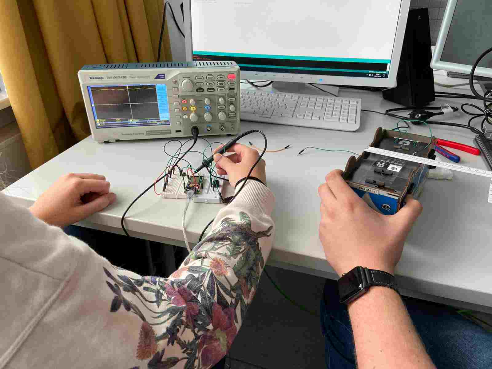 Nun sollten Sie die Schaltungen beide aufgebaut und getestet haben. Jetzt ist es an der Zeit, sich wieder mit Ihren Teammitgliedern zusammen zu setzen und die Ergebnisse zu vergleichen. Dafür können Sie bspw. Ihren Teammitgliedern Ihren erstellten Quellcode zeigen und die entstandene Melodie (oder Ton) präsentieren. Da es hier keine Vorgaben gab, können dabei sehr unterschiedliche Lösungen entstanden sein. Zudem könnt Ihr nochmal im Gespräch offengebliebene Fragen klären. Anschließend können Sie sich entweder alle zusammen für eine Umsetzungsvariante entscheiden oder jeder für sich selber. Letzteres bringt mehr Individualität in Ihre Projekte, aber es ist Ihnen als Team überlassen, wie Sie die Aufgabe lösen wollen.