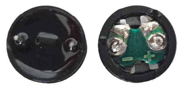 Abbildung: Rückseite vom aktiven Summer (links) und passiven Summer (rechts)
