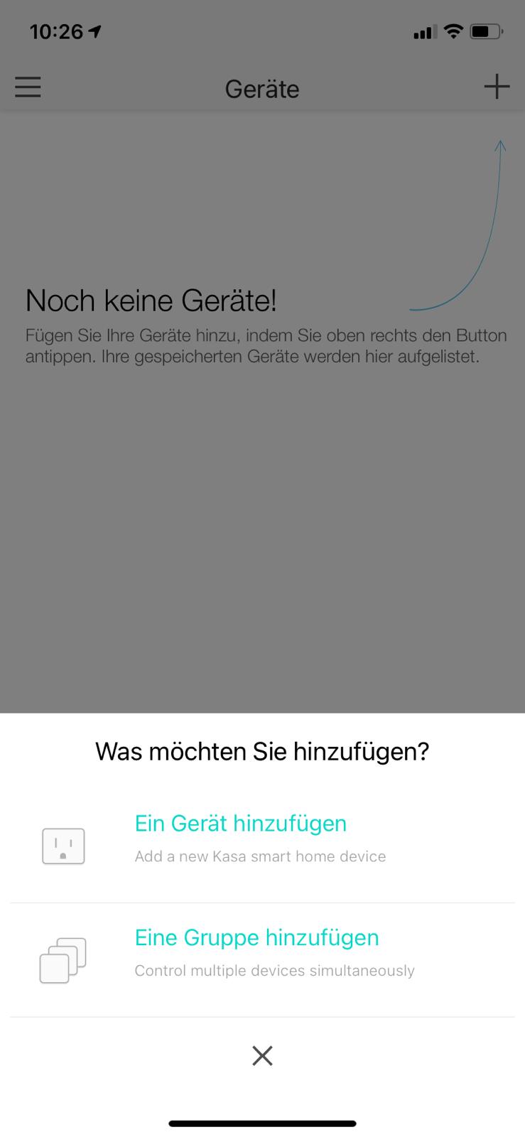 Um nun Geräte hinzuzufügen, klickt ihr wie gezeigt auf das PLUS oben rechts und anschließend auf „Ein Gerät hinzufügen“. |
