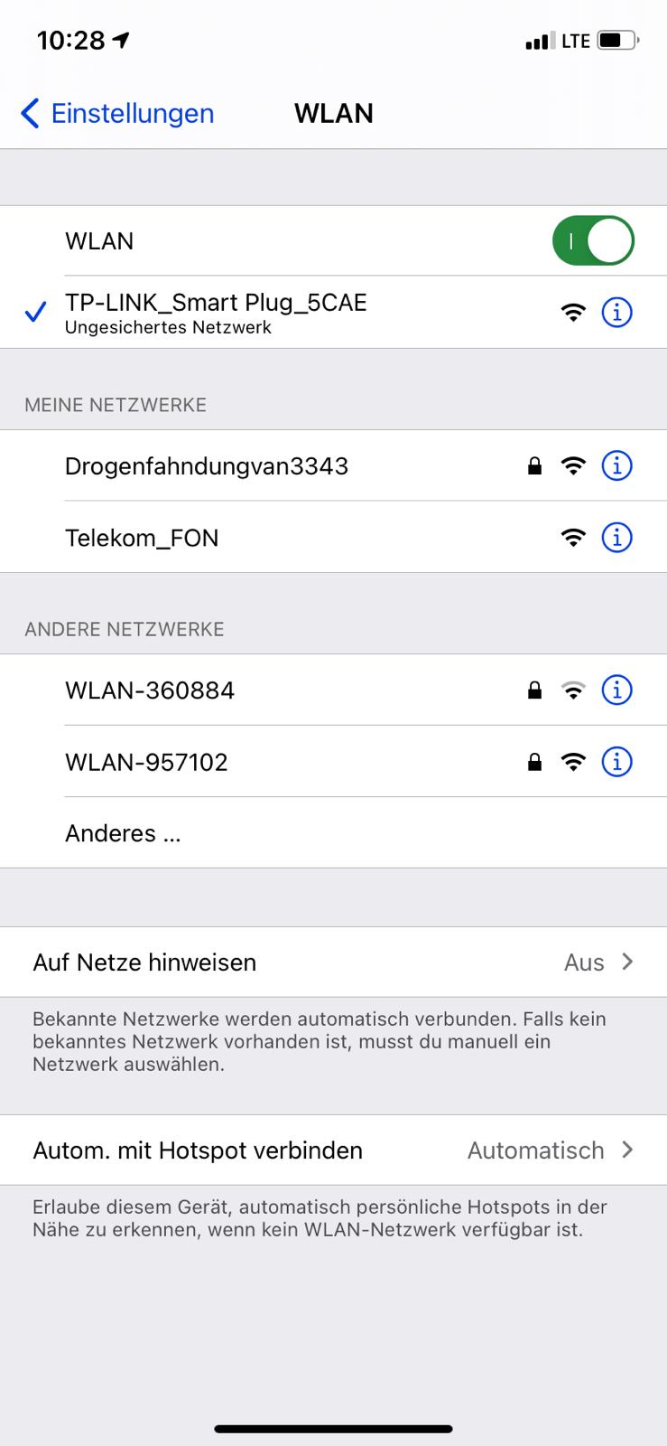 | Dieser Schritt wird bei Android-Geräten manchmal automatisch ausgeführt. In den WLAN-Einstellungen eures Smartphones müsst ihr die Steckdose (namentlich „TP-LINK-Smart Plug_...“) auswählen. | |