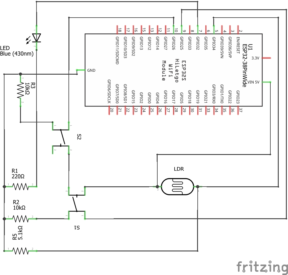 Das nachfolgende Bild zeigt den Fritzing-Plan mit dem ESP32.