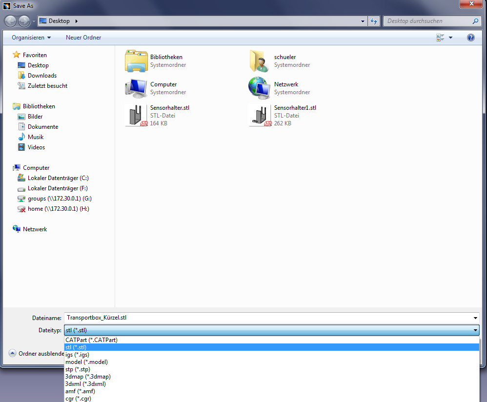 Hier musst du nur noch den gewünschten Dateinamen eingeben und den Datentyp "stl" anwählen. Abschließend wählst du einen Speicherort aus und speicherst die Datei über die Taste "Speichern".