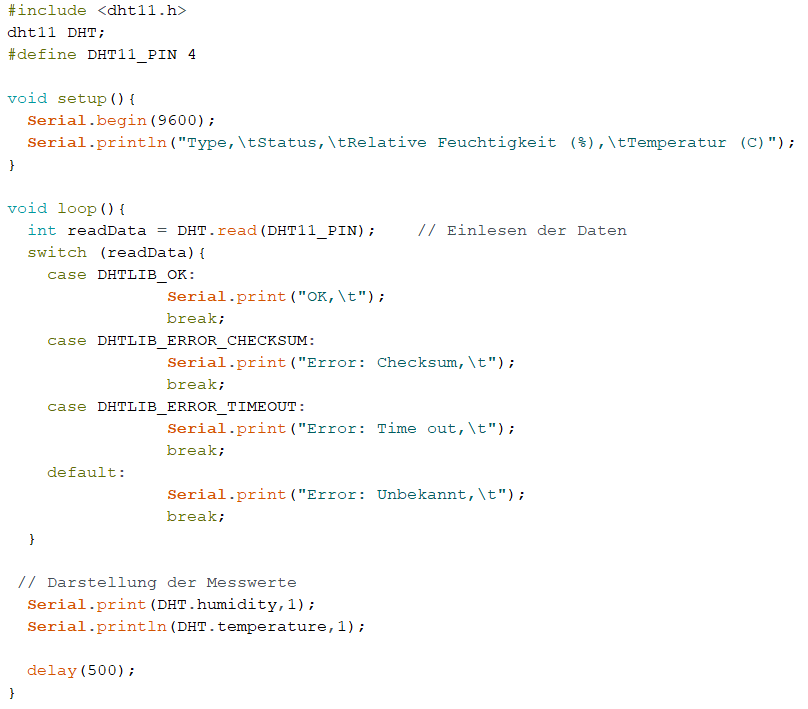 Es wird zunächst die Arduino Bibliothek für den DHT11 benötigt.