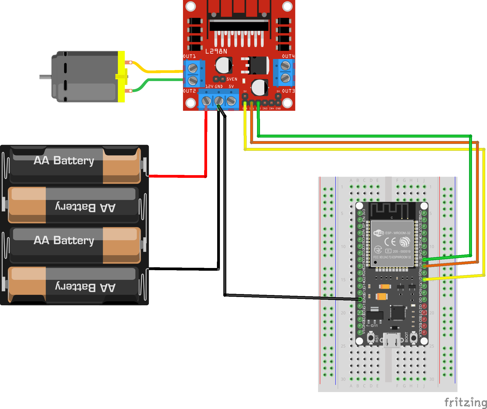 Abbildung: Verdrahtungsbeispiel eines Bürstenmotor mit L298N Motortreiber
