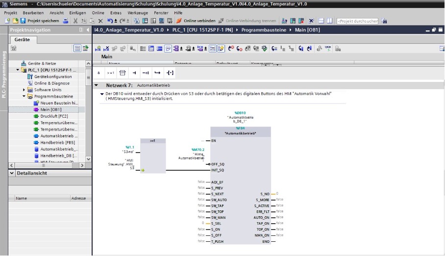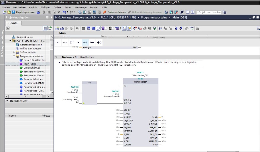 Nachdem das Schrittkettenprogramm erfolgreich erweitert wurde, werden nun im nächsten Schritt die Buttons und Leuchtmelder des Touchpanels funktionsfähig gemacht.