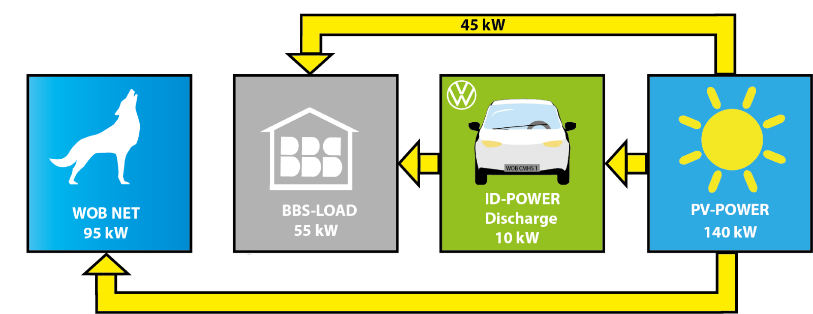 Die Echtzeit-Darstellung zeigt z.B.: wie ein Computer in der Berufsschule den Strom, der durch die Anlage eingespeist wird, nutzt. Dabei berechnet das User Interface die Kosten und das CO2, welches für die Erzeugung des Stromes gebraucht werden würden und stellt nach der Berechnung die eingesparten Kosten und das eingesparte CO2 dar.