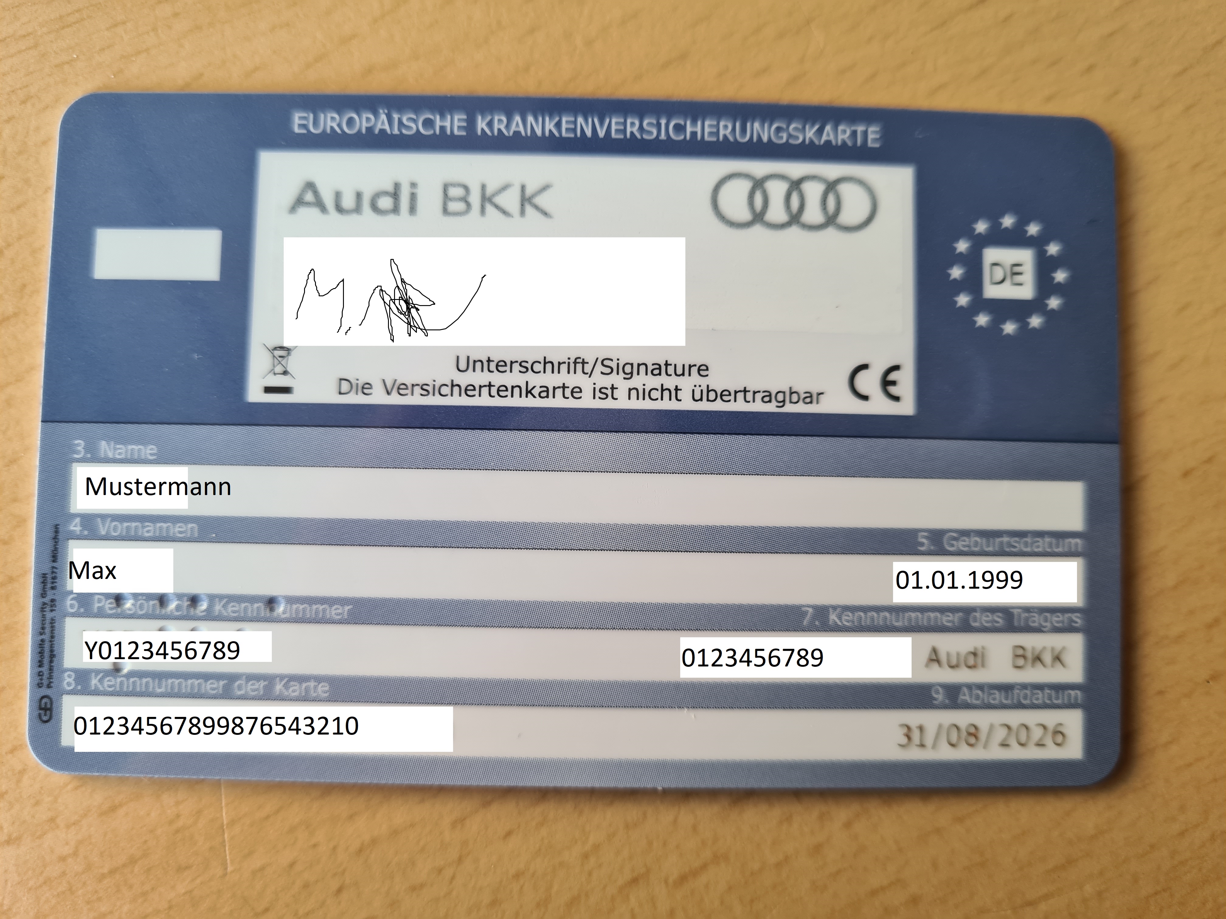 Ein Beispiel einer Elektronischen Gesundheitskarte können sie in den unten stehenden Bildern sehen.